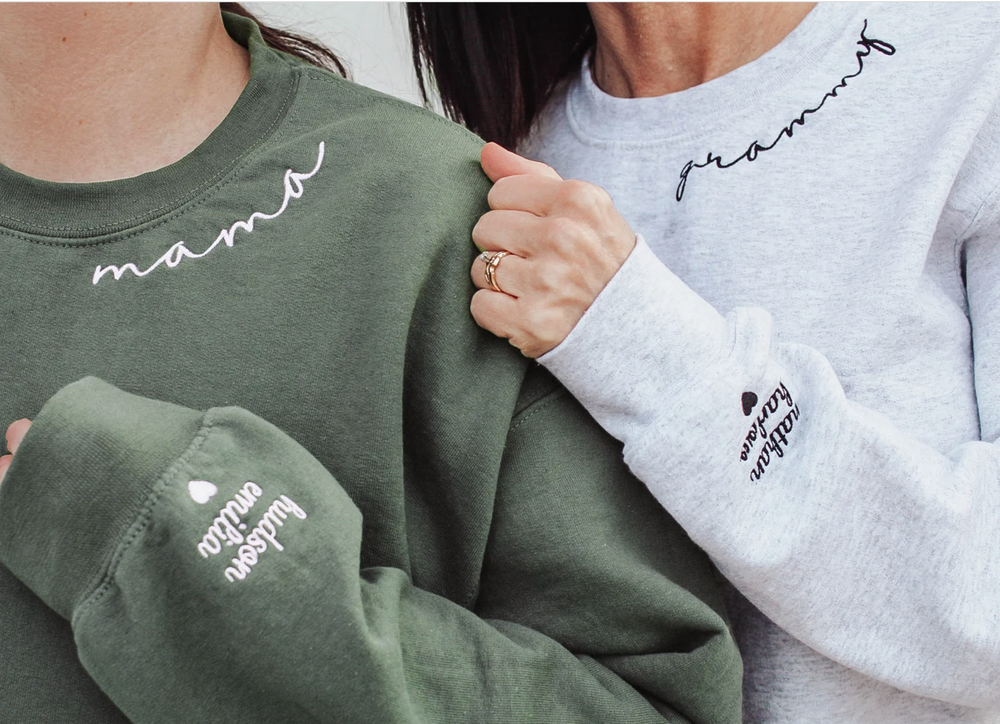 Another cute and stylish way to show off mama status - these personalized sweatshirts would make such a great gift!
