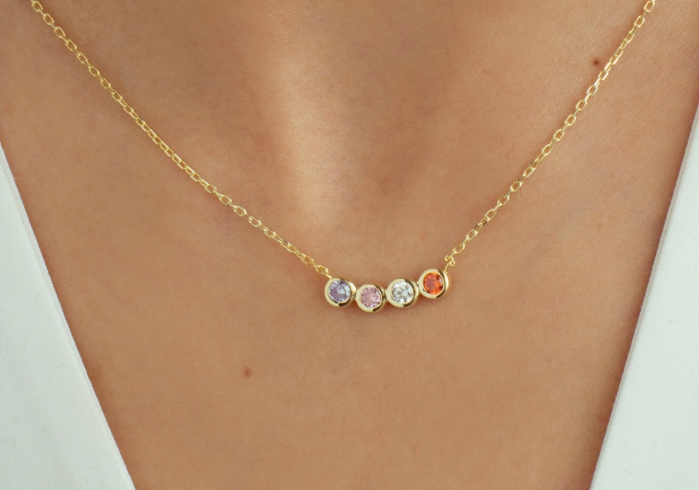 The perfect accessory for the mom who loves to show off her kids! This 14K Gold necklace features the birthstones of her kids. A beautiful and meaningful gift for any mom.