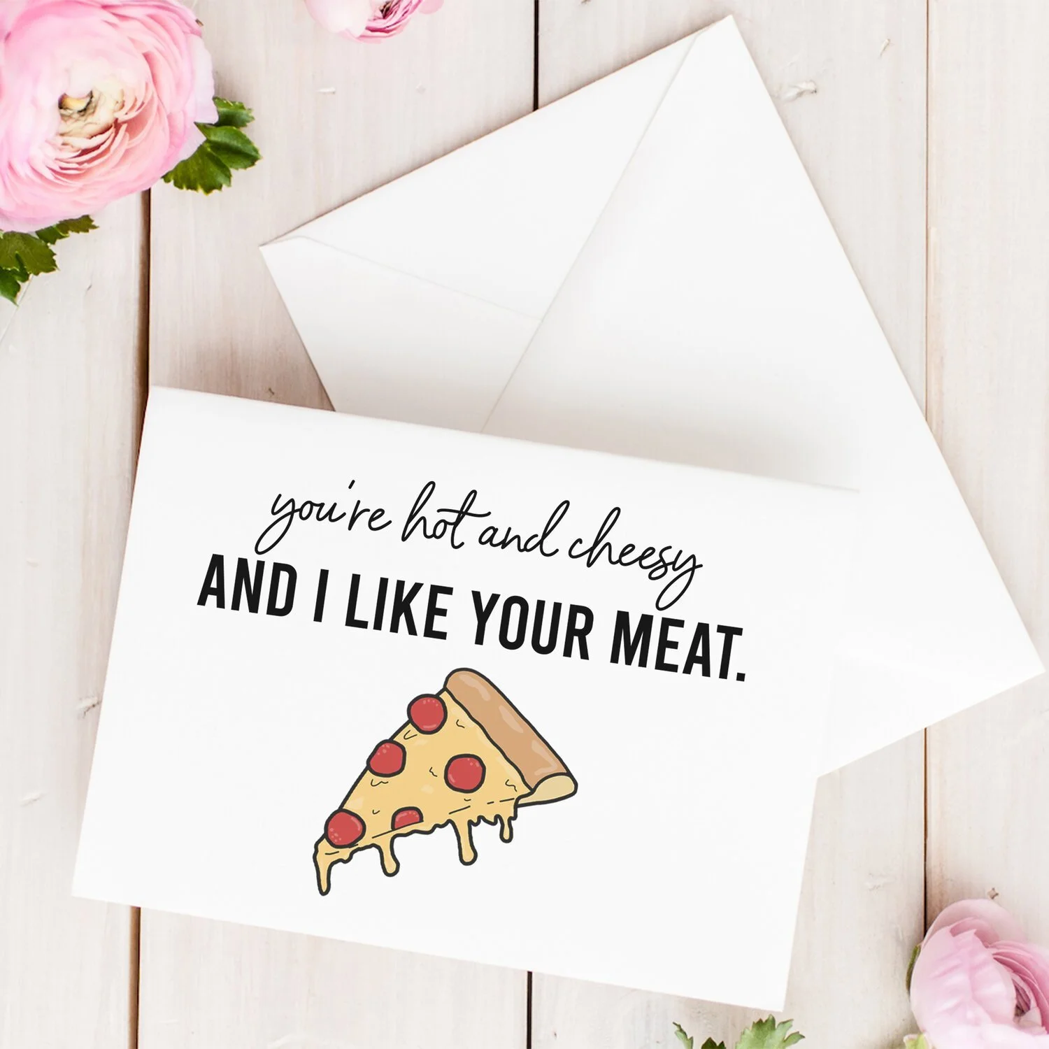 3. Keep things saucy with this punny pizza card! It's perfect for Valentine's Day, anniversaries, and for your regular weekly pizza date. Originally a digital illustration, the “Hot and Cheesy Pizza” card is the perfect card for your Valentine who has the local pizza place on speed dial.